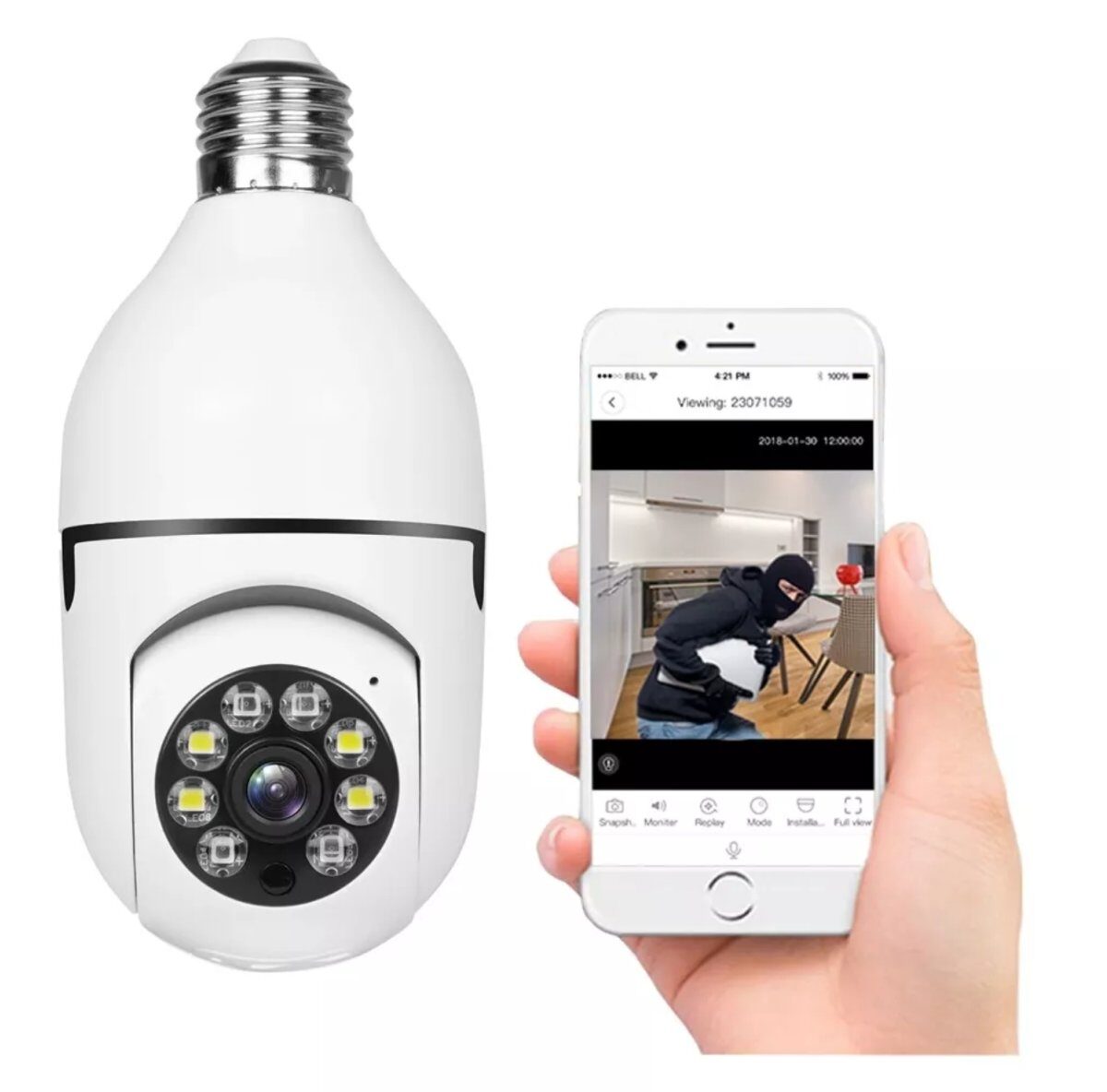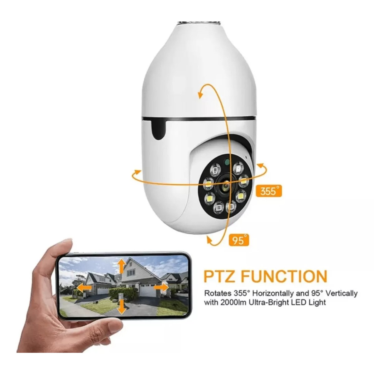 Su diseño tipo domo con instalación en rosca de foco estándar permite colocarla fácilmente en cualquier portalámparas, sin necesidad de instalaciones complicadas ni cables adicionales. Solo debes enroscarla, conectarla a la red WiFi y comenzar a controlar tu cámara desde la aplicación móvil.