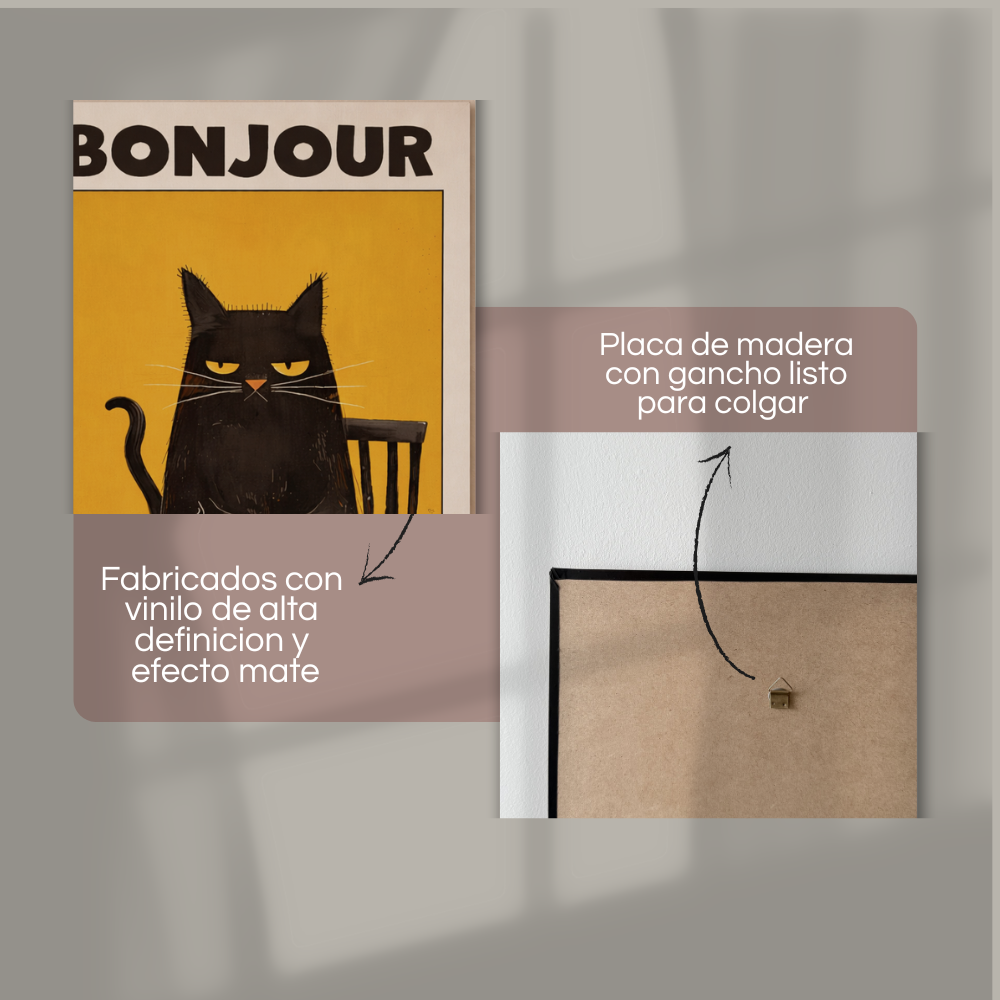 Nuestros cuadros están fabricados con base de madera resistente y cuentan con vinilo de alta calidad con acabado mate, lo que les da una apariencia elegante y sin reflejos.