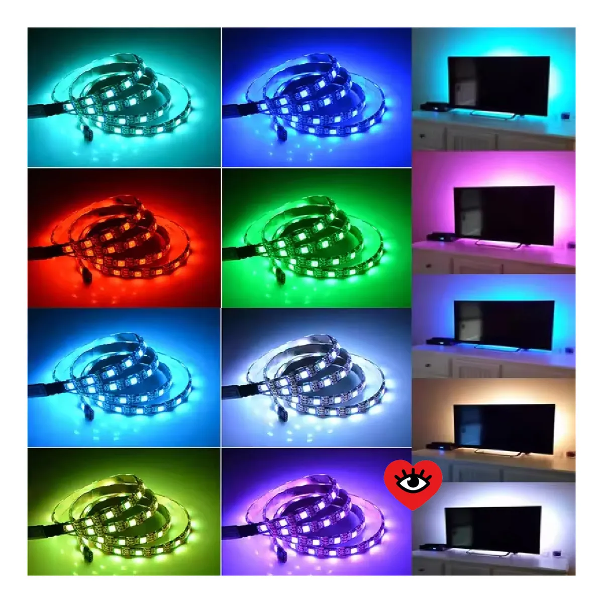 La tira LED ofrece una iluminación brillante y uniforme que permite crear diferentes ambientes según el espacio. Es ideal para quienes desean darle un toque moderno, gamer o relajante a su habitación, sala de estar o área de trabajo.